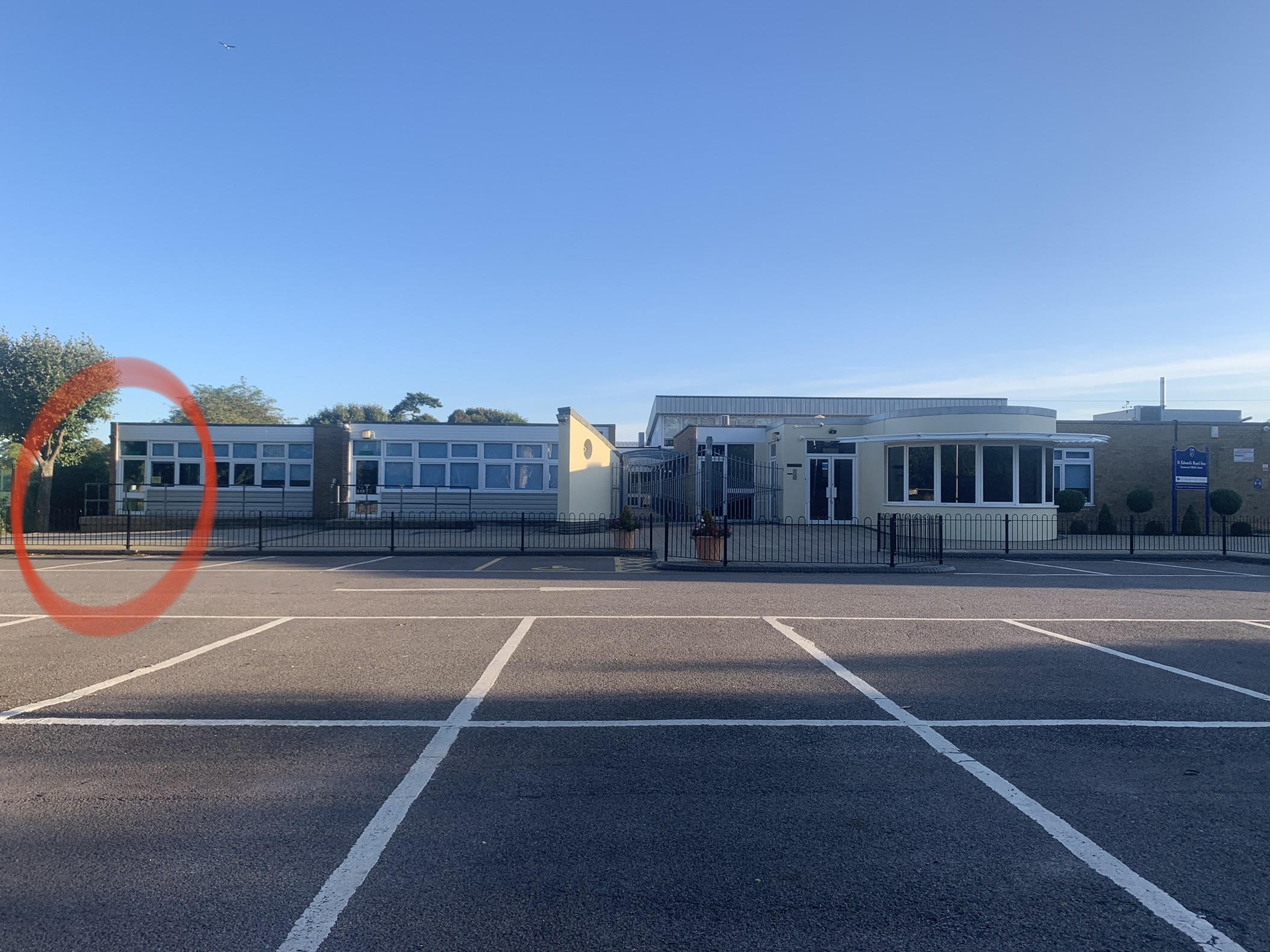 As you turn into the school gates, make your way to the car park at the end of the driveway. Once parked, there is a path on the left side of the school, follow this and it will lead you to the sports hall which is through the open white doors.